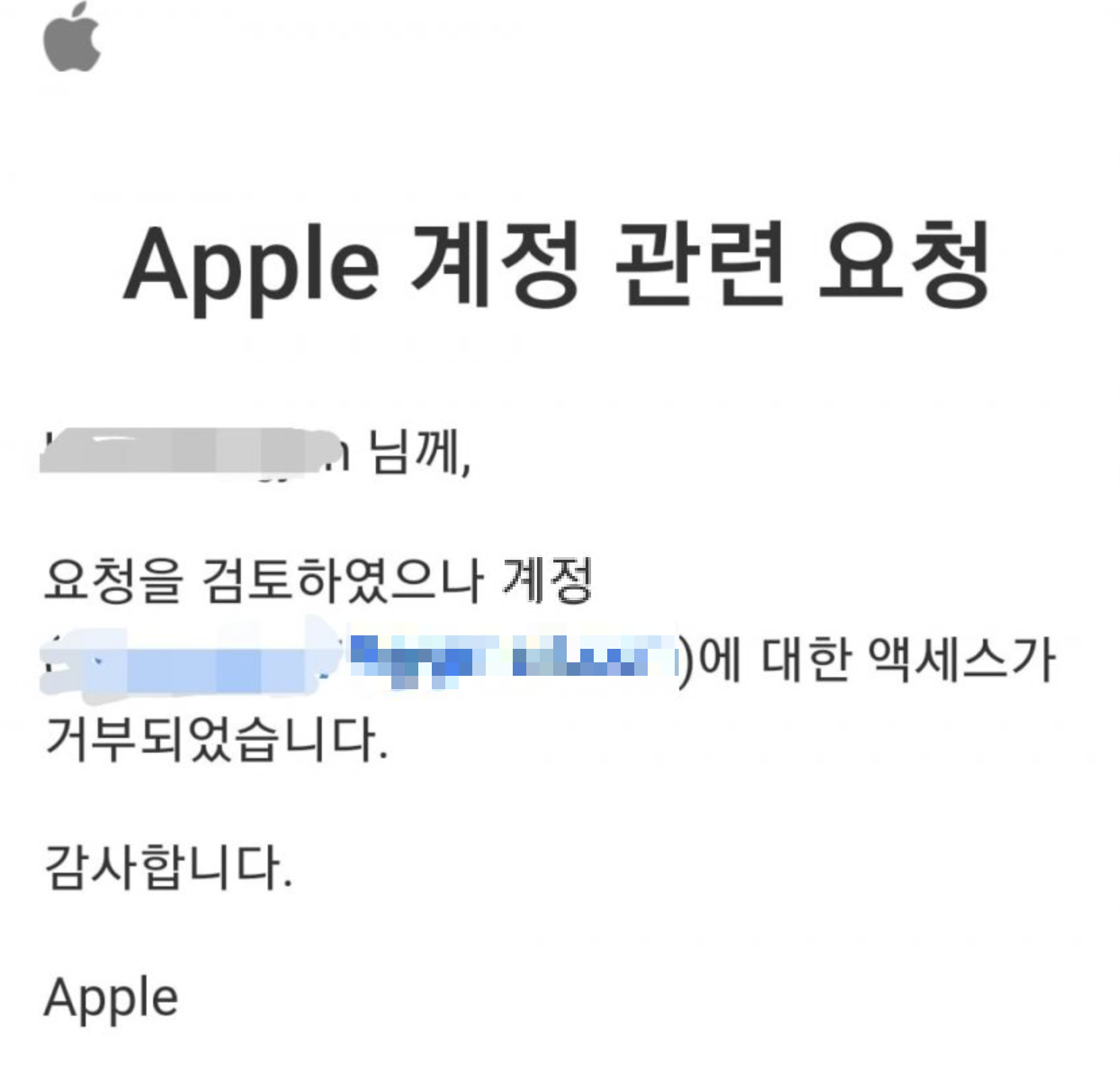 | 애플 계정 액세스 거부 시 대처 방법 | 애플 계정 비밀번호 재설정, 계정 복구 절차, 애플 지원 센터와의 연락을 통해 계정 잠금 해제를 시도해야 함. |