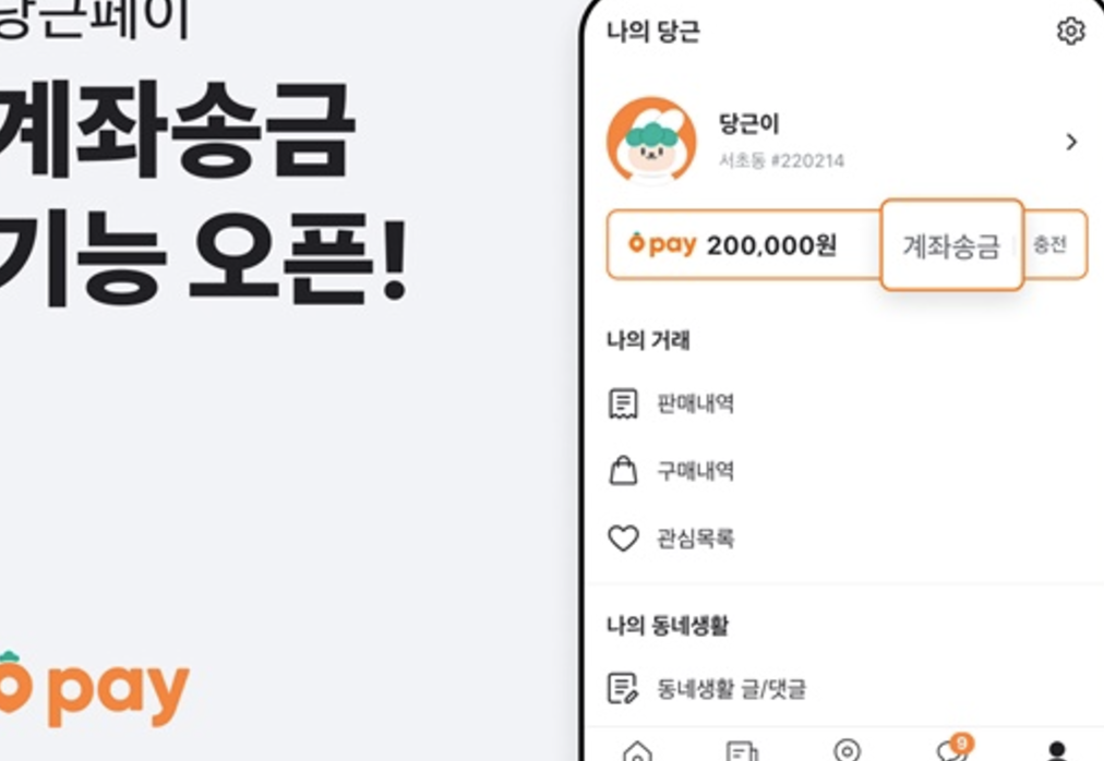 | 당근페이 출금 | 출금 한도 및 수수료를 확인 후, 은행 계좌로 송금된 금액을 인출할 수 있음. 출금까지 시간이 걸릴 수 있음. |