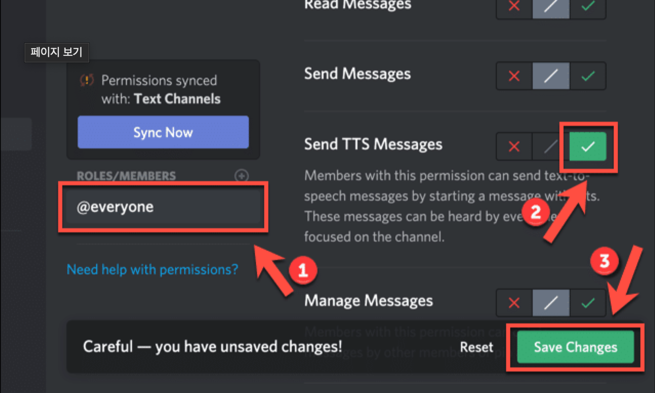읽기, 쓰기, 매니지 권한 등을 적절히 설정하여 티토커가 서버 내에서 원활하게 작동하도록 해야 합니다.