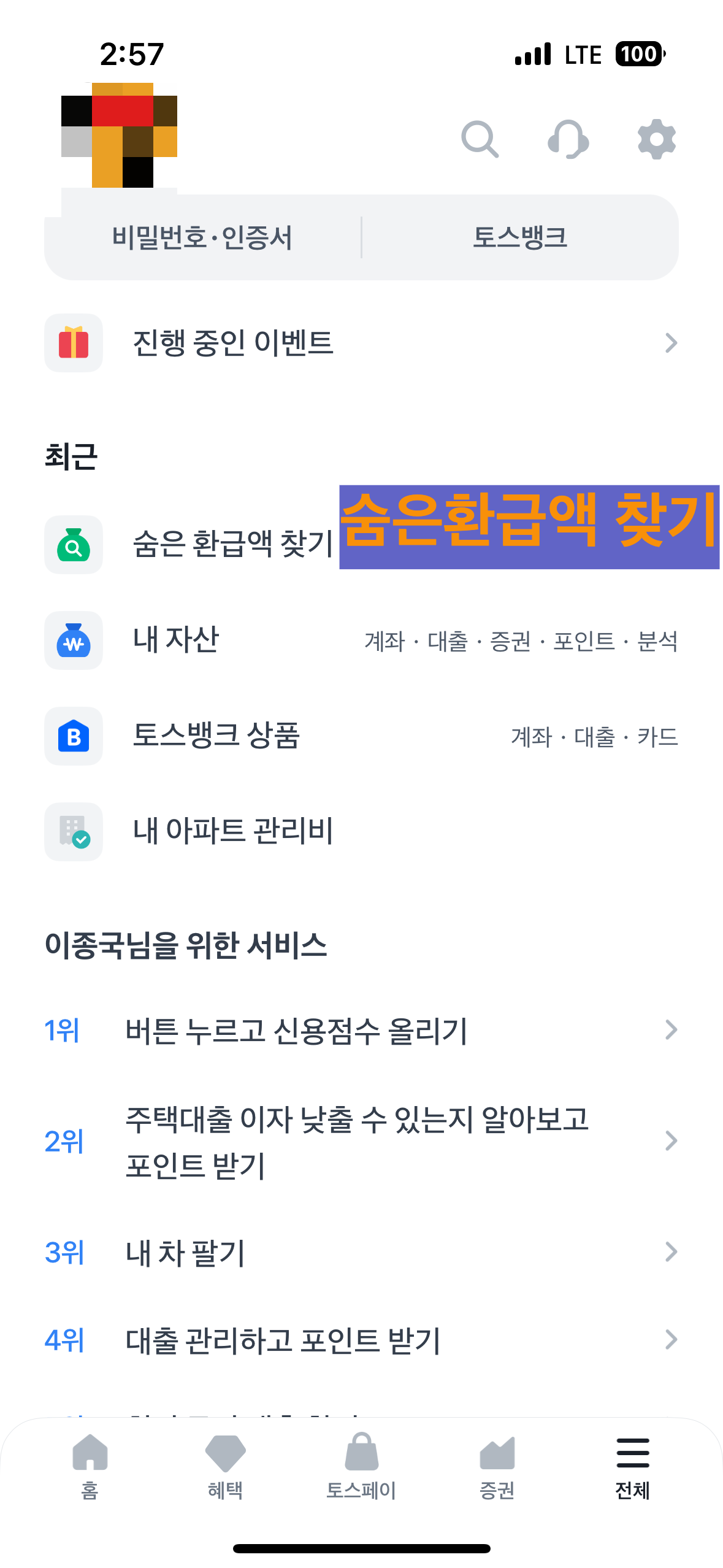 토스는 제공하는 서비스가 많아서 메뉴 찾기가 어려운것도 사실입니다.