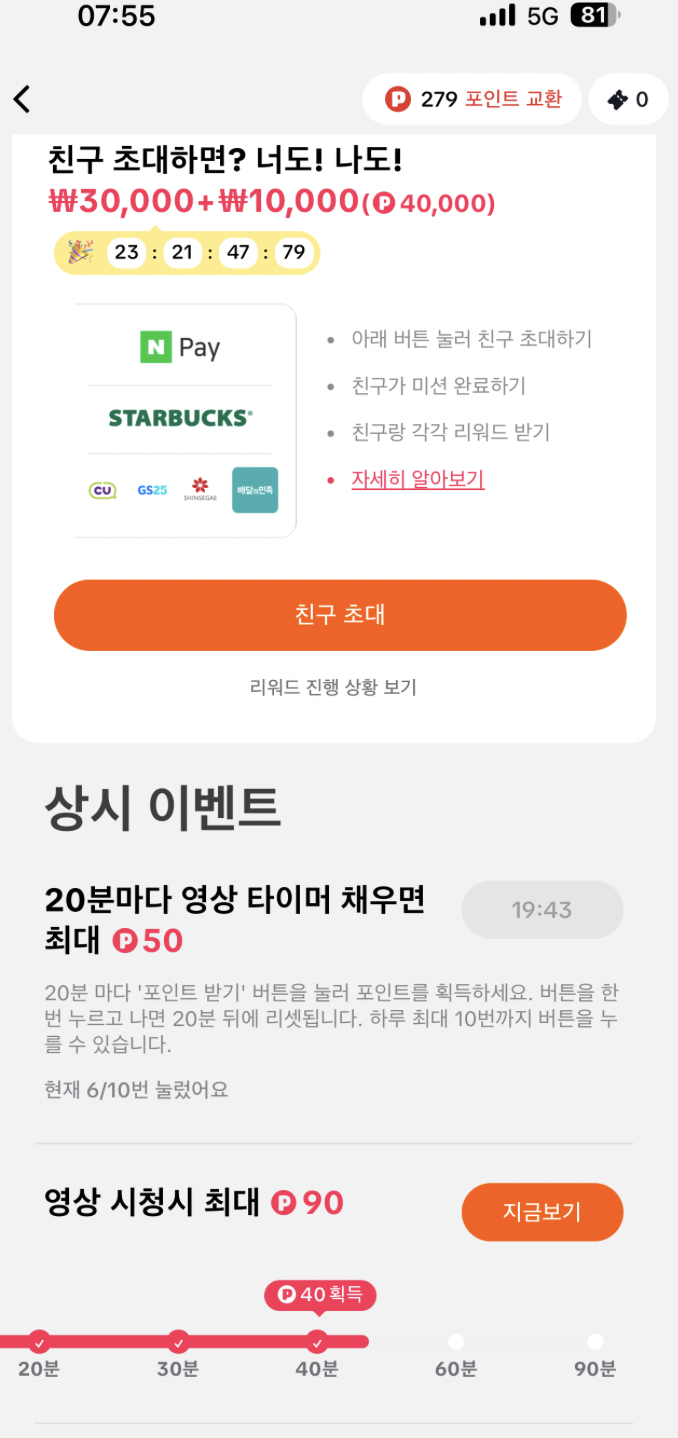 그래서 어쩔수 없이 다른 지메일 계정으로 갤럭시 폰에 로그인을 했고, 가족에게 본인인증을 부탁하고, 해당 가족의 계좌로 일단 리워드 출금은 하고 있어요.